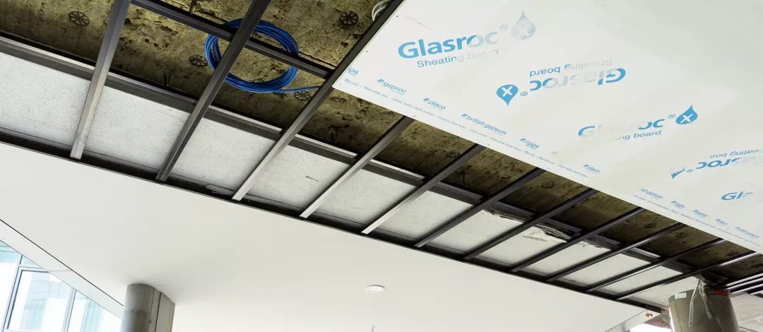 Zusätzlich erfolgte die Installation abgehängter Akustikdecken in den Probe- und Seminarräumen sowie im Eingangsbereich. Im Sanitärbereich wurden Vorsatzschalen sowie Wände und Decken ausgeführt. Das Veranstaltungsgebäude befindet sich aktuell noch in Fertigstellung.