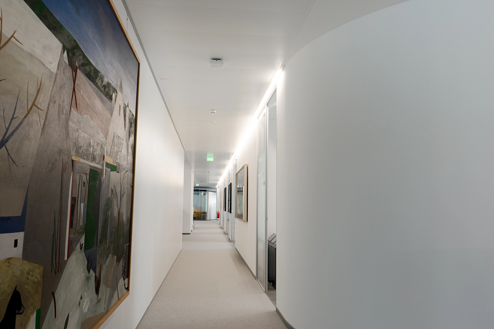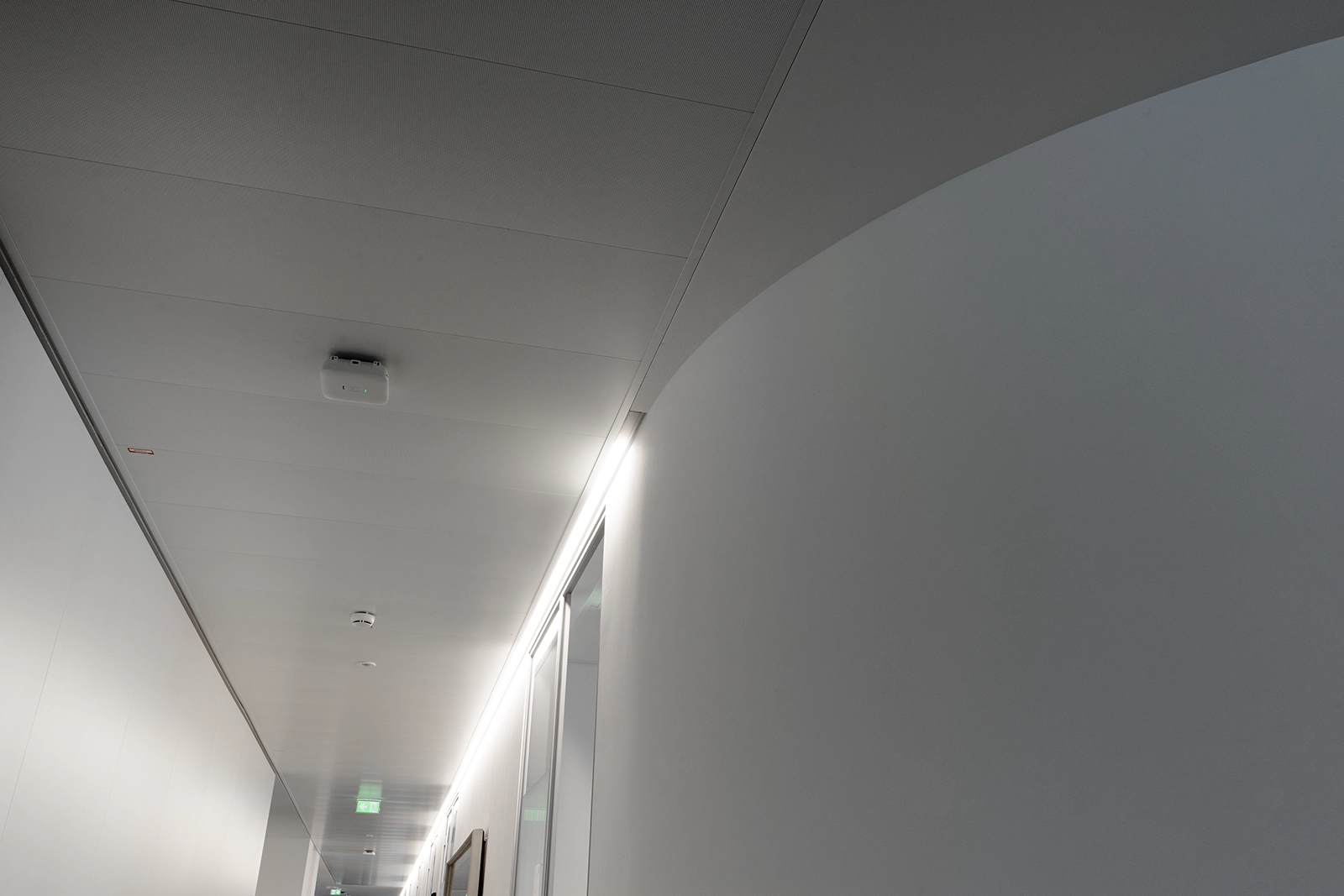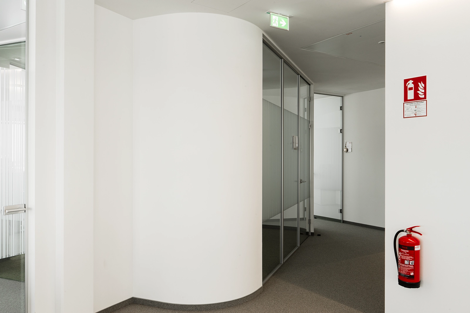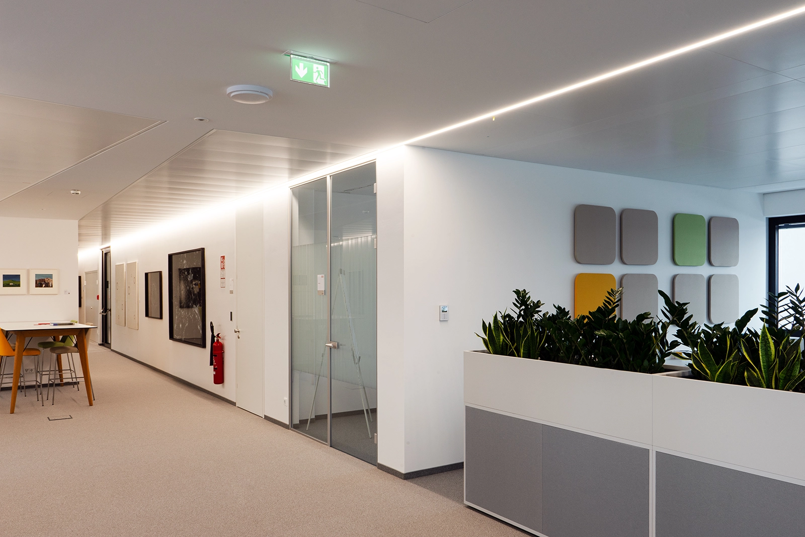 Beim Projekt STRABAG Zentrale Linz wurde besonderes Augenmerk auf einen optimalen Schallschutz gelegt, um ein ruhiges, konzentriertes Arbeitsumfeld sicherzustellen. Insbesondere sind hier die freistehenden Kuben zu erwähnen, welche mit abgerundeten Ecken und Verglasung aufwarten und durch hochwertige Schalldämmung u. a. als Ruhezone fungieren.