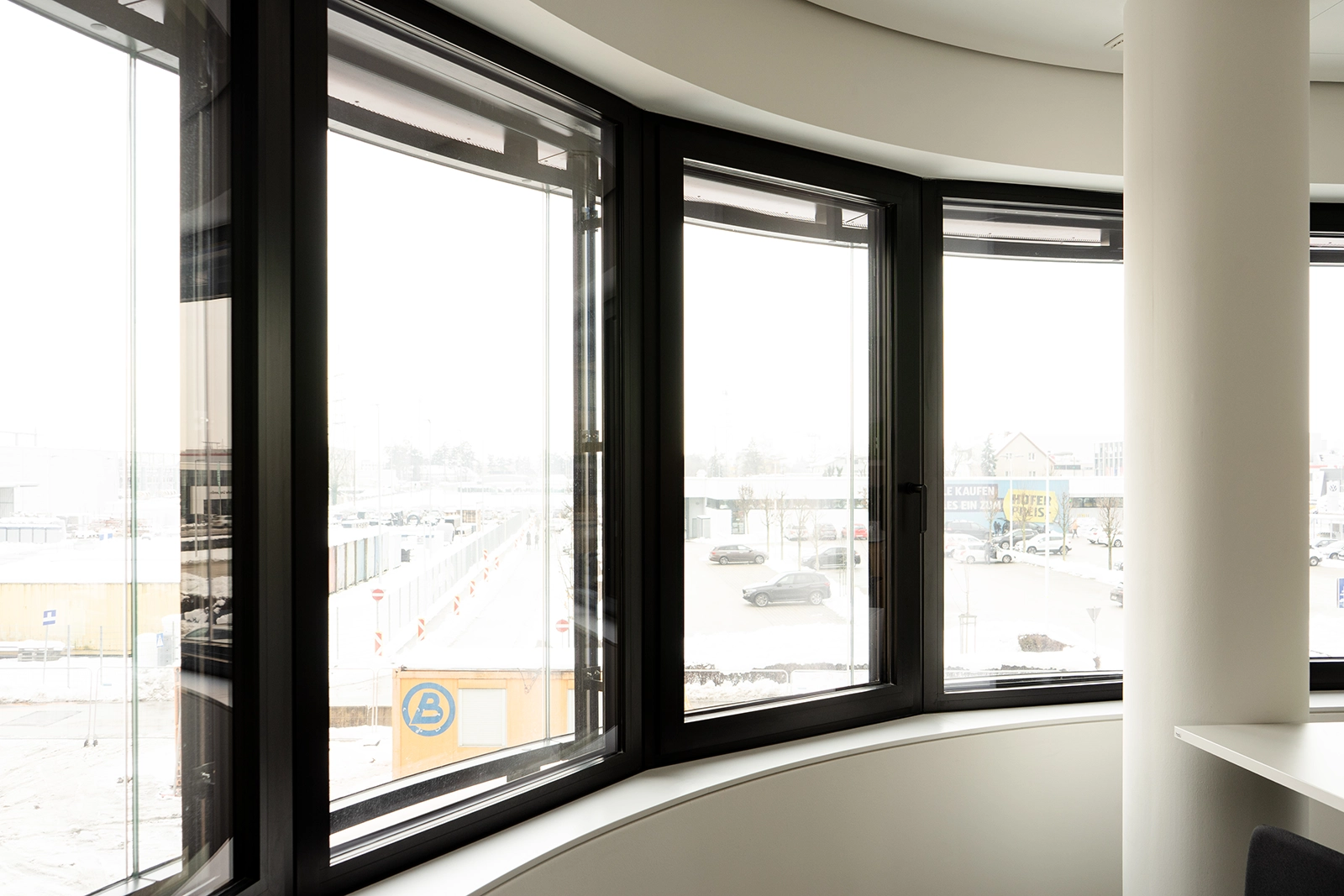 Das zeitgemäße Designkonzept der Rundungen wird im Außen wie im Inneren des gesamten Projekts sichtbar. Im Bereich des Innenausbaus wurde u. a. mit Formteilen gearbeitet, um gerundete Wände sowie Vorsatzschalen herzustellen.
